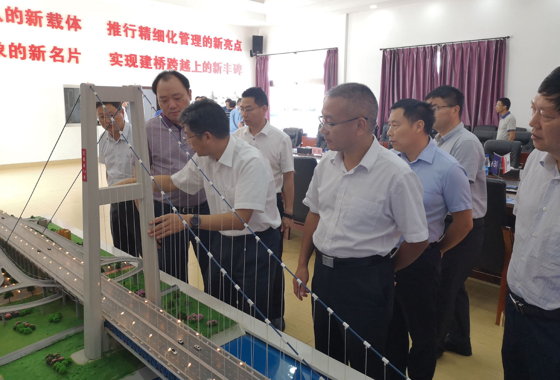 9月4日至5日,胡啟生市長率隊(duì)赴交通部長江航務(wù)管理局、水利部長江水利委員會(huì)對接G3銅陵長江公鐵大橋項(xiàng)目工可有關(guān)工作,考察鸚鵡洲大橋開通運(yùn)行、楊泗港大橋工程建設(shè)情況,并在楊泗港大橋工程建設(shè)現(xiàn)場聽取中鐵大橋院關(guān)于G3銅陵長江公鐵大橋項(xiàng)目景觀設(shè)計(jì)方案編制情況的匯報(bào),副市長王綱根及市發(fā)改委、市交通局、市住建委、市水務(wù)局負(fù)責(zé)人參加,公司黨工委書記、董事長何成龍及中鐵大橋院院長張敏全程陪同參加相關(guān)活動(dòng)。