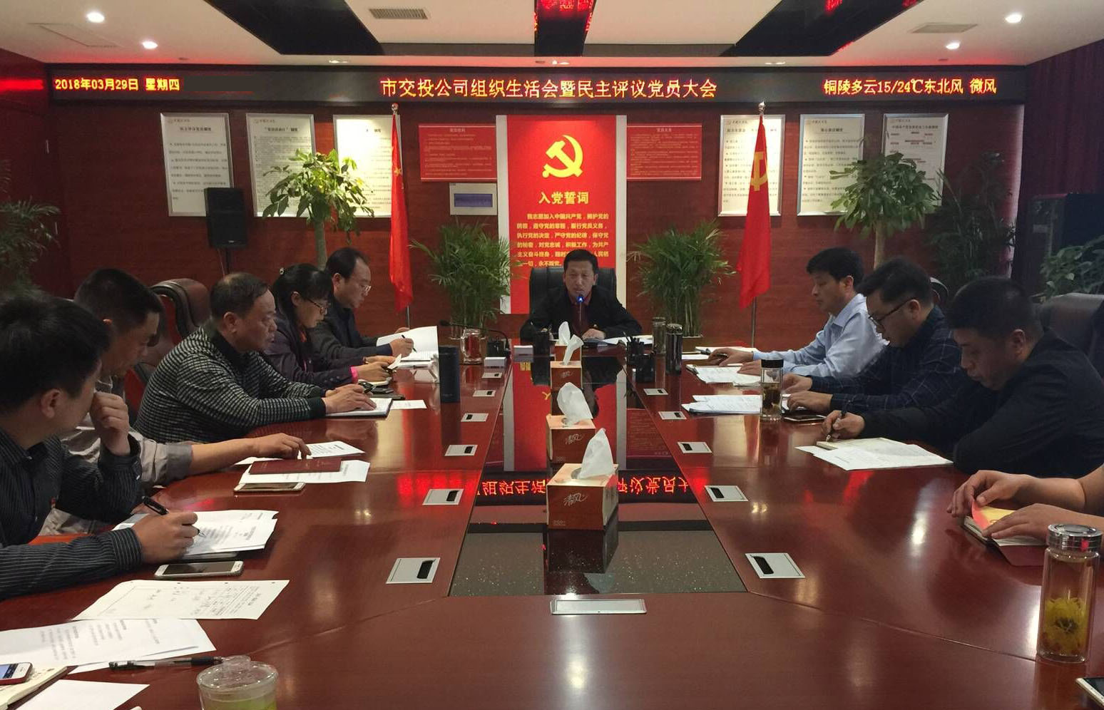 根據(jù)市委組織部工作要求,3月29日下午,市交投公司機關(guān)黨支部召開2017年度組織生活會暨民主評議黨員大會,公司黨工委班子成員以普通黨員身份參加會議。會上,黨支部書記帶頭作批評與自我批評,其他黨員同志依次進行對照檢查和自我批評,并填寫民主評議表。最后,公司黨工委書記、董事長何成龍同志對會議召開和對照檢查情況作點評,何成龍書記對機關(guān)黨支部成立以來所做的工作給予充分肯定,并就做好公司黨建工作提出四點要求:要進一步落實支部黨建工作要求,要進一步加強支部隊伍建設(shè),要進一步增強支部黨建工作實效,要進一步發(fā)揮黨員先鋒模范作用,為公司深化改革、轉(zhuǎn)型發(fā)展提供堅強的思想基礎(chǔ)和組織保障。機關(guān)黨支部書記表示,將以此次會議召開為契機,認真落實黨工委何成龍書記提出的期望和要求,進一步創(chuàng)新方式、方法,積極推進公司黨建工作,為公司轉(zhuǎn)型發(fā)展做出更多貢獻。