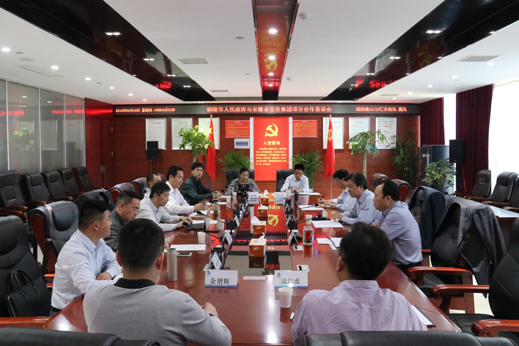 4月19日下午,銅陵市人民政府與安徽省投資集團(tuán)項目合作懇談會在公司舉行,省投資集團(tuán)黨委委員、副總經(jīng)理、省鐵路投資有限責(zé)任公司黨委書記、董事長于華偉、市政府副市長黃學(xué)龍、省鐵路投資有限責(zé)任公司黨委副書記、總經(jīng)理葛焱坤、公司黨工委書記、董事長何成龍、省鐵路投資有限責(zé)任公司總工程師汪學(xué)軍、安徽蕪銅長江高速公路有限公司董事長儲林繼、安徽蕪銅長江高速公路有限公司總經(jīng)理曾勇、公司黨工委委員、副總經(jīng)理湯世才出席會議,省鐵路投資有限責(zé)任公司經(jīng)營管理部、財務(wù)管理部及公司綜合部、金融部負(fù)責(zé)人參加會議。