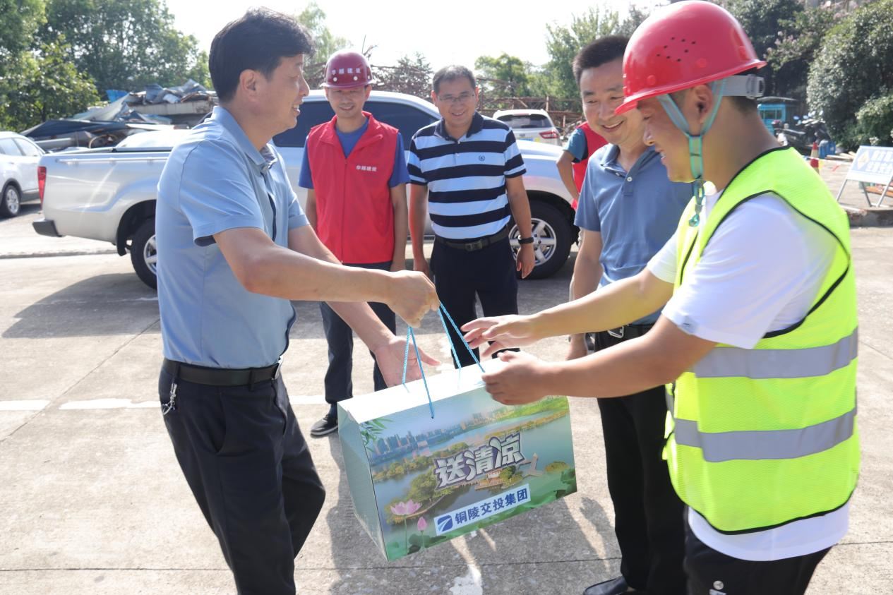在G3銅陵長江公鐵大橋先行工程項目部、江北港鐵路專用線項目部、綜交新型路面材料施工現(xiàn)場,章新華、黃勇為一線員工送去了防暑降溫物品,并叮囑項目建設(shè)人員要切實做好安全防護工作,始終樹牢安全觀,堅持文明施工,確保全面安全穩(wěn)定。