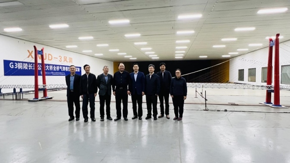 3月10日,集團(tuán)公司黨委書(shū)記、董事長(zhǎng)何成龍率隊(duì)赴西南交通大學(xué),在XNJD-3風(fēng)洞實(shí)驗(yàn)室參加G3 銅陵長(zhǎng)江公鐵大橋科研專(zhuān)題研究成果專(zhuān)家評(píng)審驗(yàn)收會(huì)。集團(tuán)公司黨委委員、副總經(jīng)理湯世才出席會(huì)議,集團(tuán)公司及銅陵長(zhǎng)江公鐵大橋投資有限公司相關(guān)部門(mén)、中鐵大橋院、中鐵大橋局、西南交大相關(guān)負(fù)責(zé)同志參會(huì)。