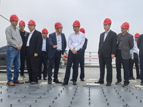 在項目現(xiàn)場,孔濤等人邊聽邊看,詳細了解項目建設整體情況、項目進度、橋梁技術創(chuàng)新和當前工作存在的困難和問題。